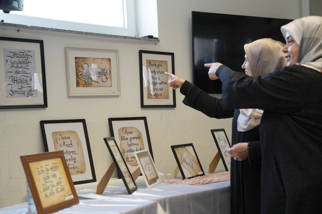 Schwerte DİTİB Süleymaniye Camii’nde kaligrafi-hat sanatı eğitmeni Muhammet Tanrıkulu tarafından verilen kursu tamamlayan gönüllü kadınlar, hazırladıkları yaklaşık 150 eseri sergiledi.